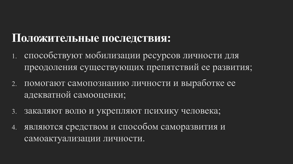 83. Внутренние (то есть касающиеся состояния самой личности) отрицательные последствия: - прекращение развития личности, начало
