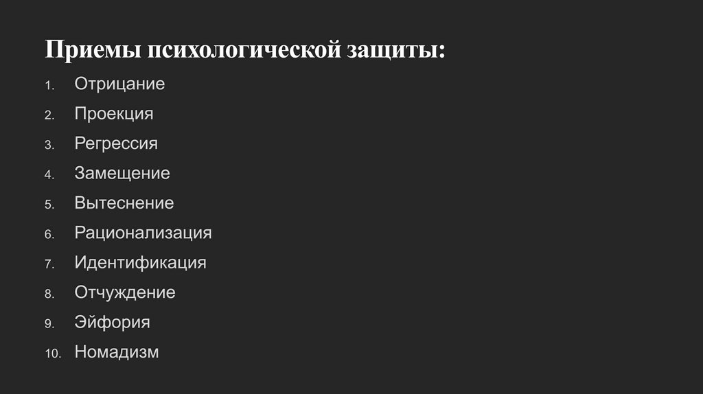 2)Определите и опишите механизмы психологической защиты, которые проявляются в его поведении и