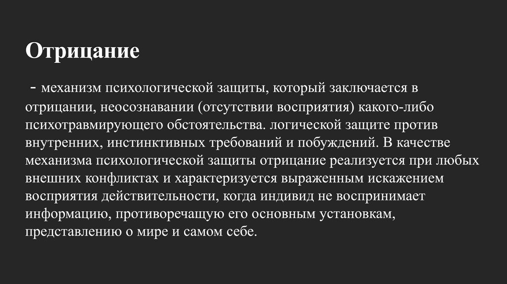 89. Охарактеризуйте психологический механизм- отрицание, его плюсы и минусы