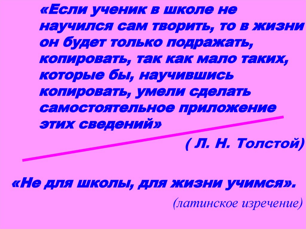 «Если ученик в школе ненаучился сам творить, то в жизни