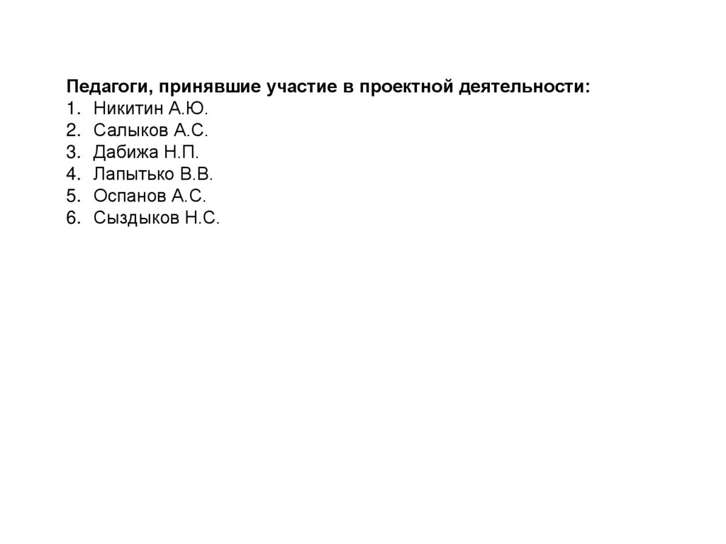 Педагоги, принявшие участие в проектной деятельности:1. Никитин А.Ю.