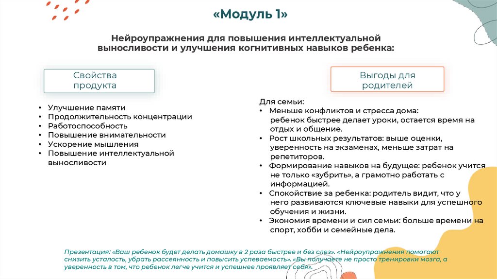 снизить усталость, убрать рассеянность и повысить успеваемость». «Вы получаете не просто тренировки мозга, а