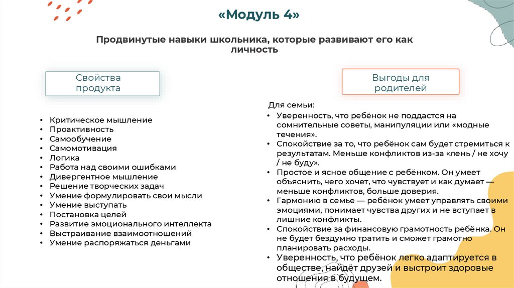 «Модуль 4»Продвинутые навыки школьника, которые развивают его как