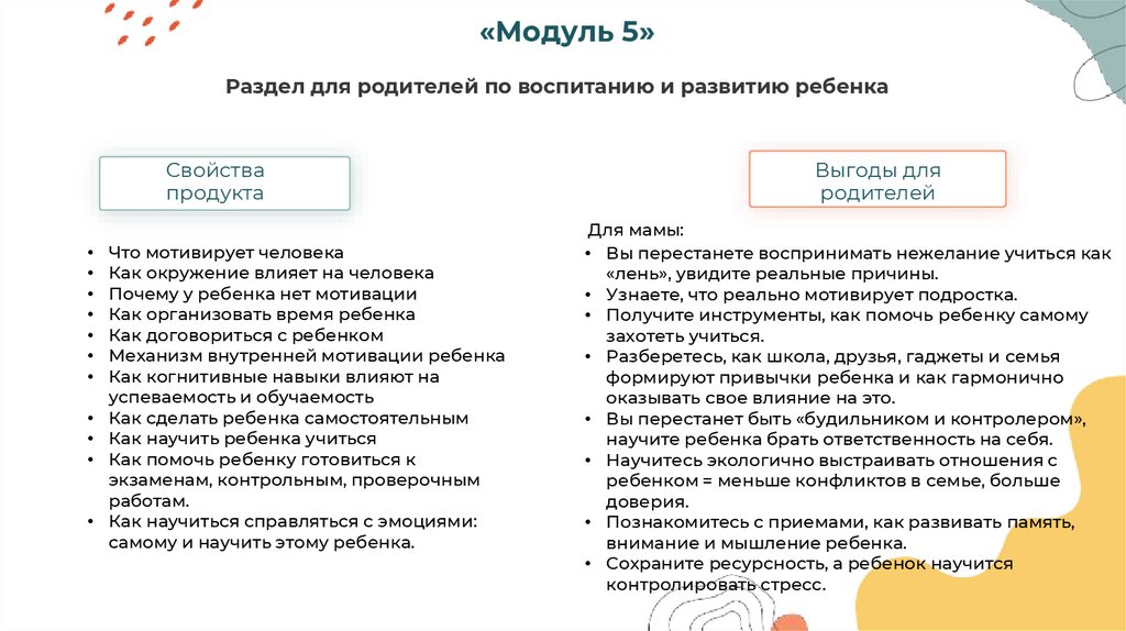 «Модуль 5»Раздел для родителей по воспитанию и развитию ребенка