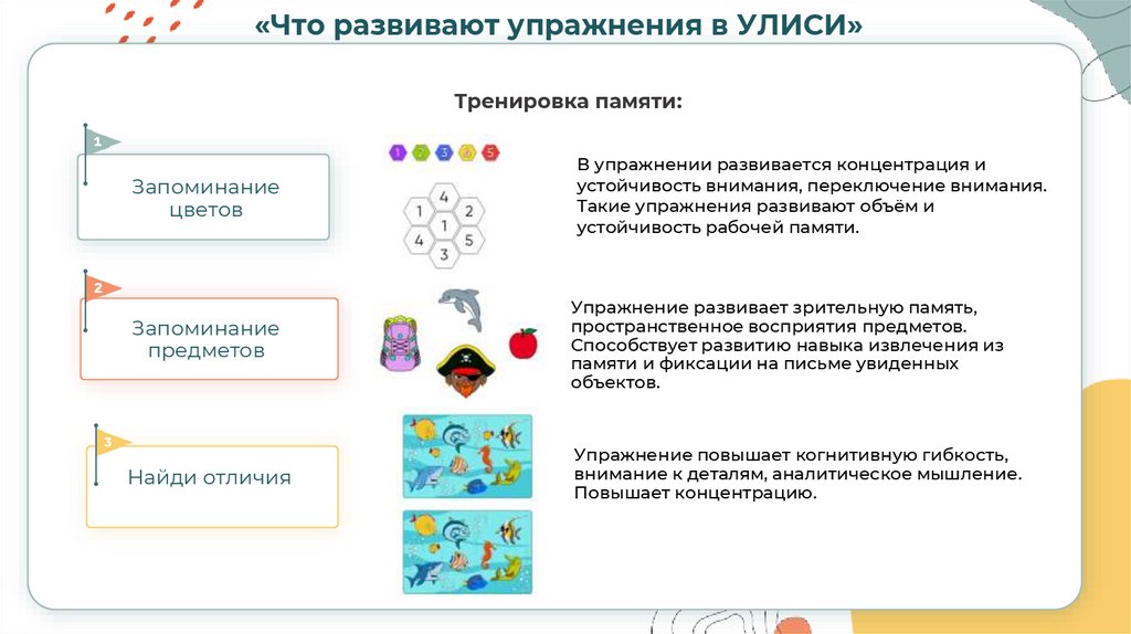 «Что развивают упражнения в УЛИСИ»Тренировка памяти: