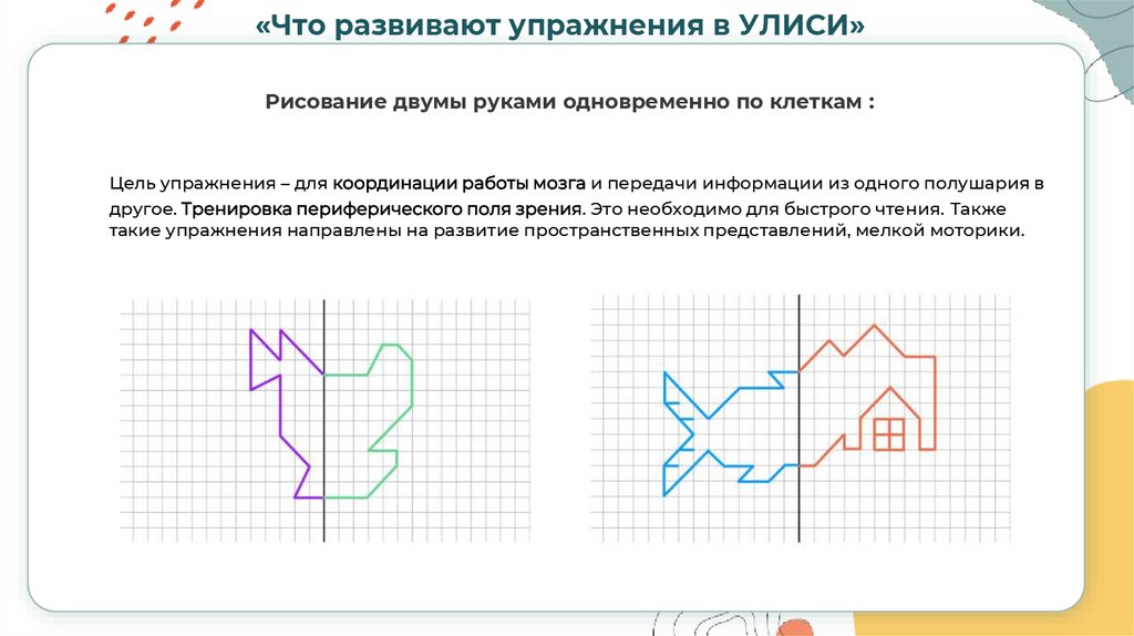 «Что развивают упражнения в УЛИСИ»Рисование двумы руками одновременно по клеткам :