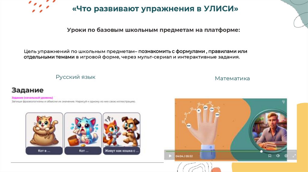 «Что развивают упражнения в УЛИСИ»Уроки по базовым школьным предметам на платформе: