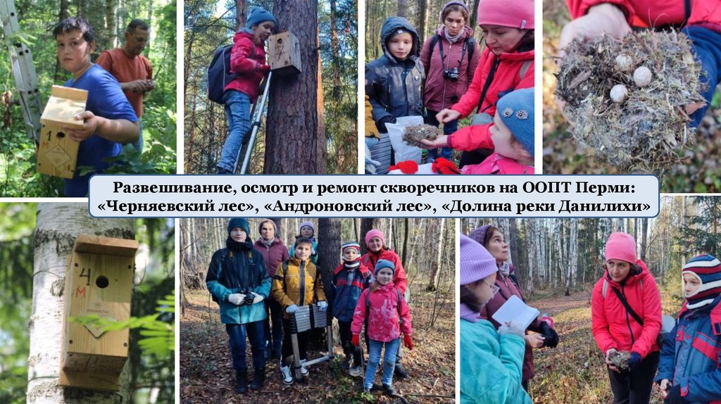 Развешивание, осмотр и ремонт скворечников на ООПТ Перми:«Черняевский лес», «Андроновский лес», «Долина реки Данилихи»
