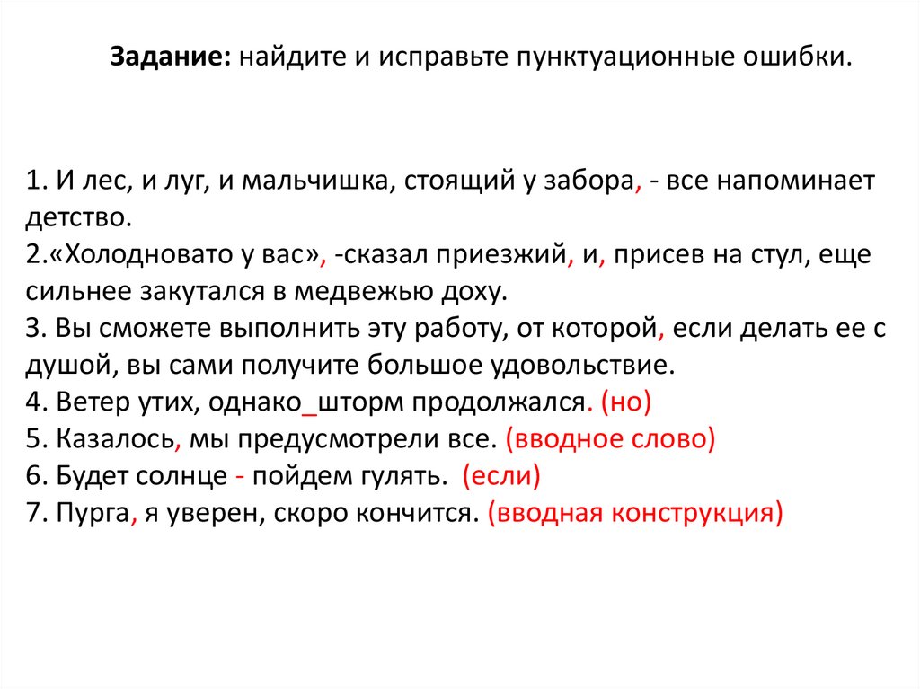 Задание: найдите и исправьте пунктуационные ошибки.1. И лес, и луг, и мальчишка, стоящий у забора, - все напоминает
