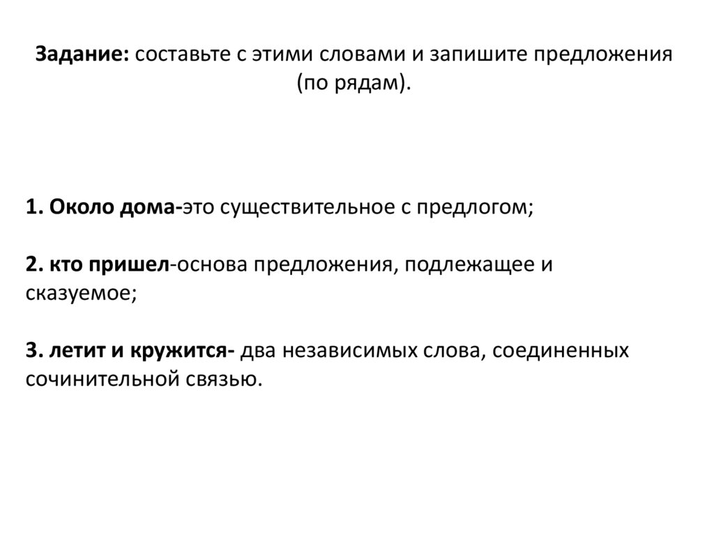 Задание: составьте с этими словами и запишите предложения(по рядам).