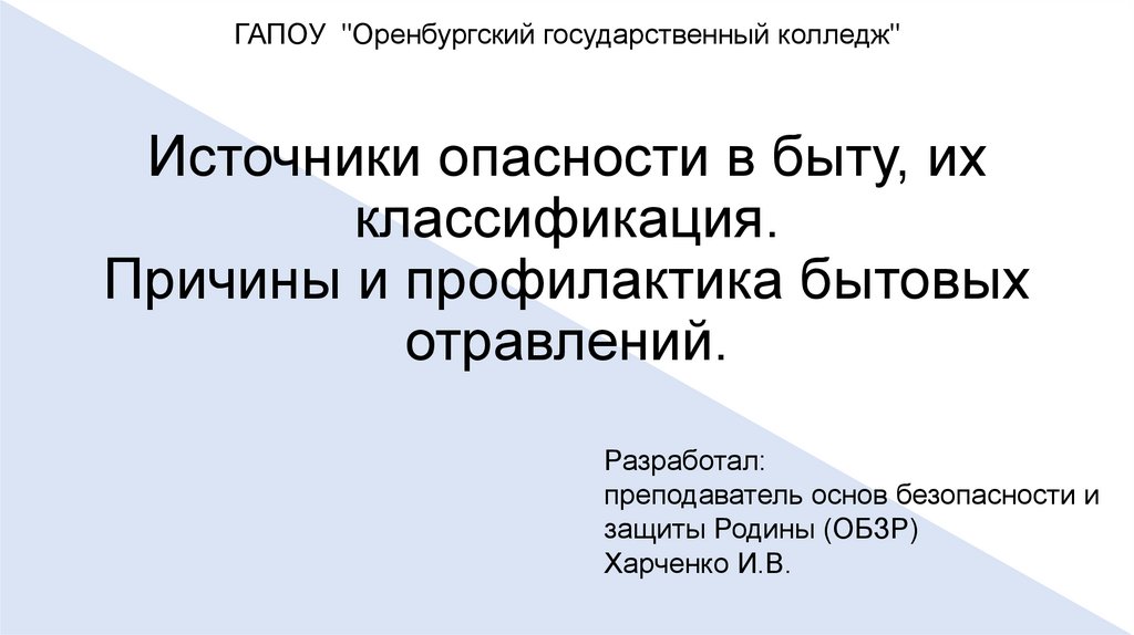 ГАПОУ "Оренбургский государственный колледж"Источники опасности в быту, их
