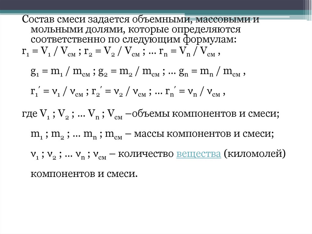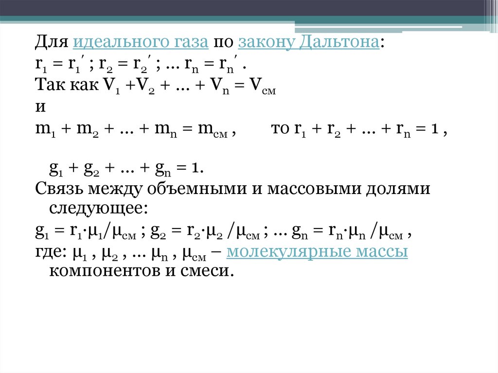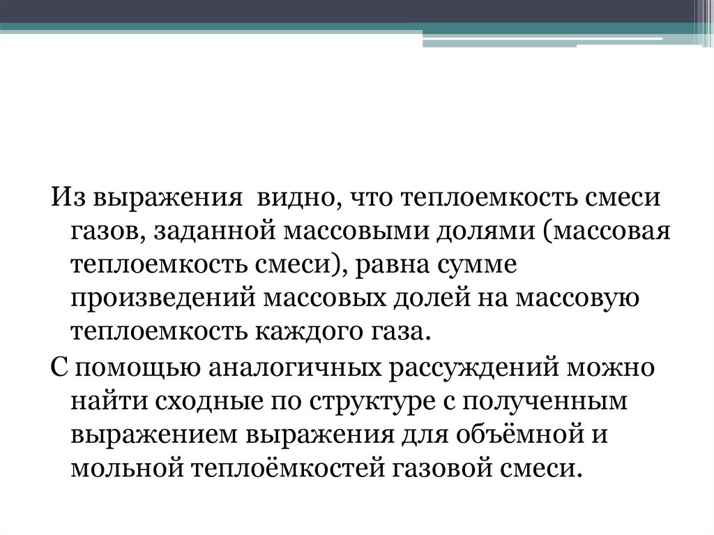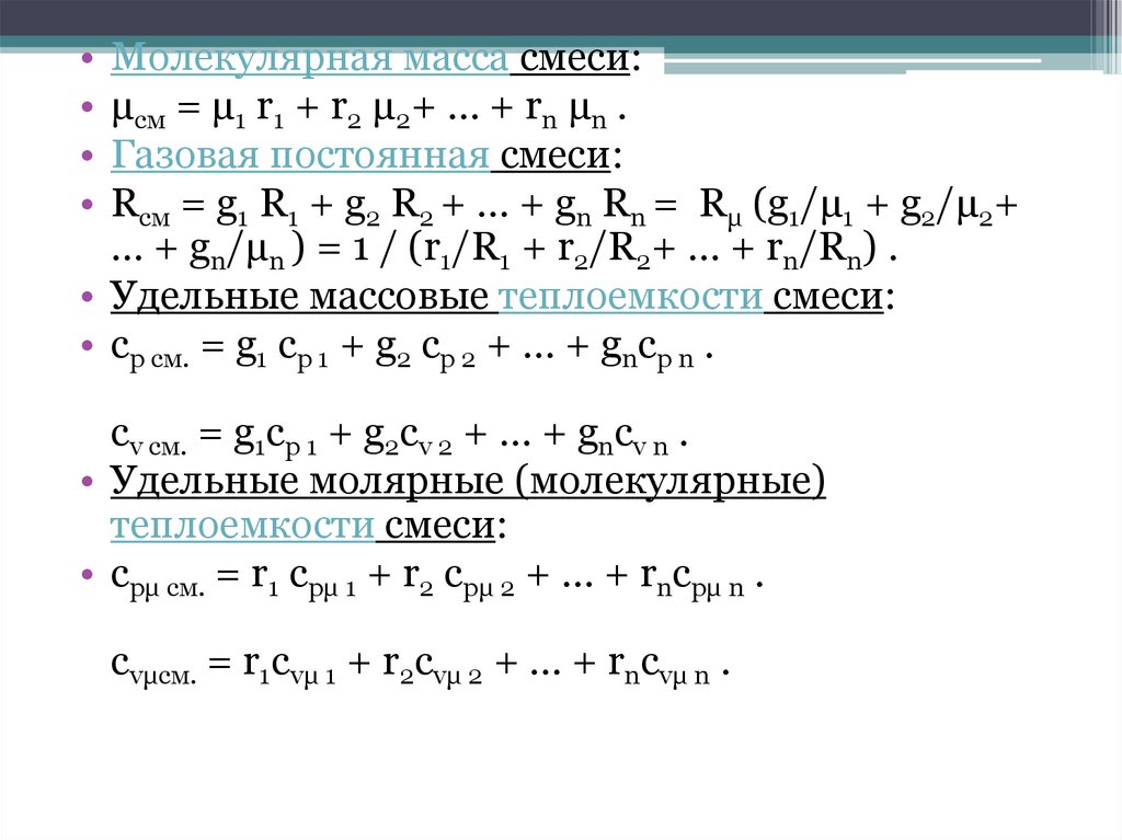 Из выражения видно, что теплоемкость смесигазов, заданной массовыми долями (массовая