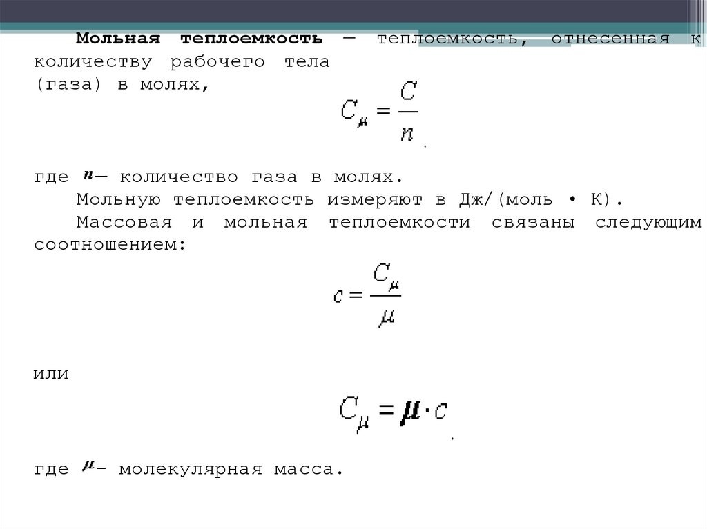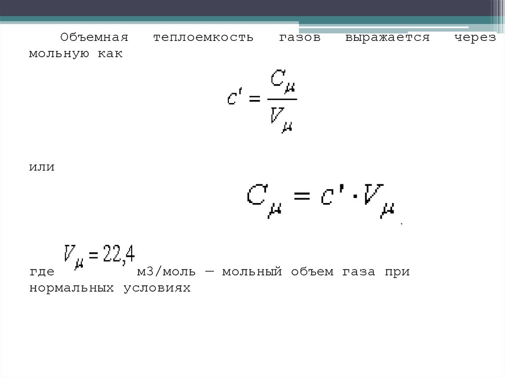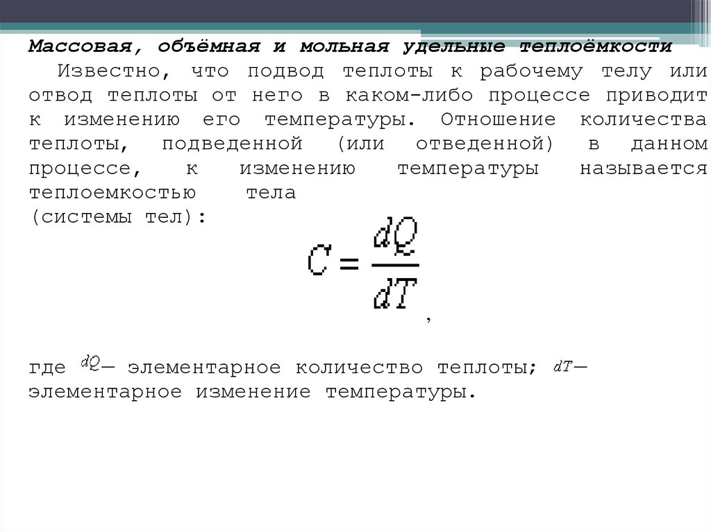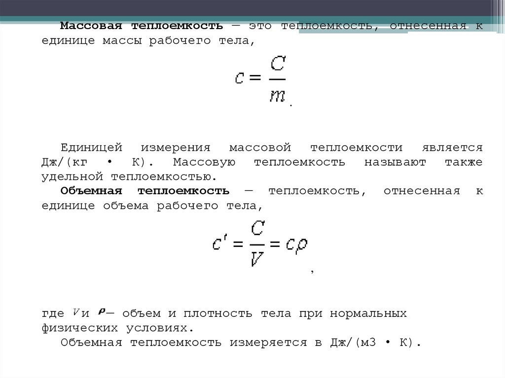 массовая – в кДж/(кг · 0С), объёмная – в кДж/(м3 · 0С).