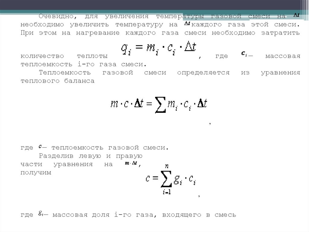 газовой смеси и теплоемкостям отдельных газов, входящих