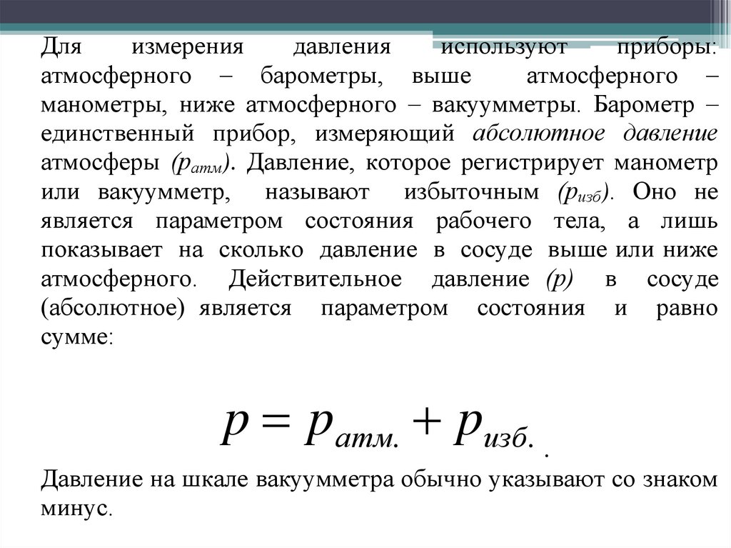 атмосферы (ратм). Давление, которое регистрирует манометр