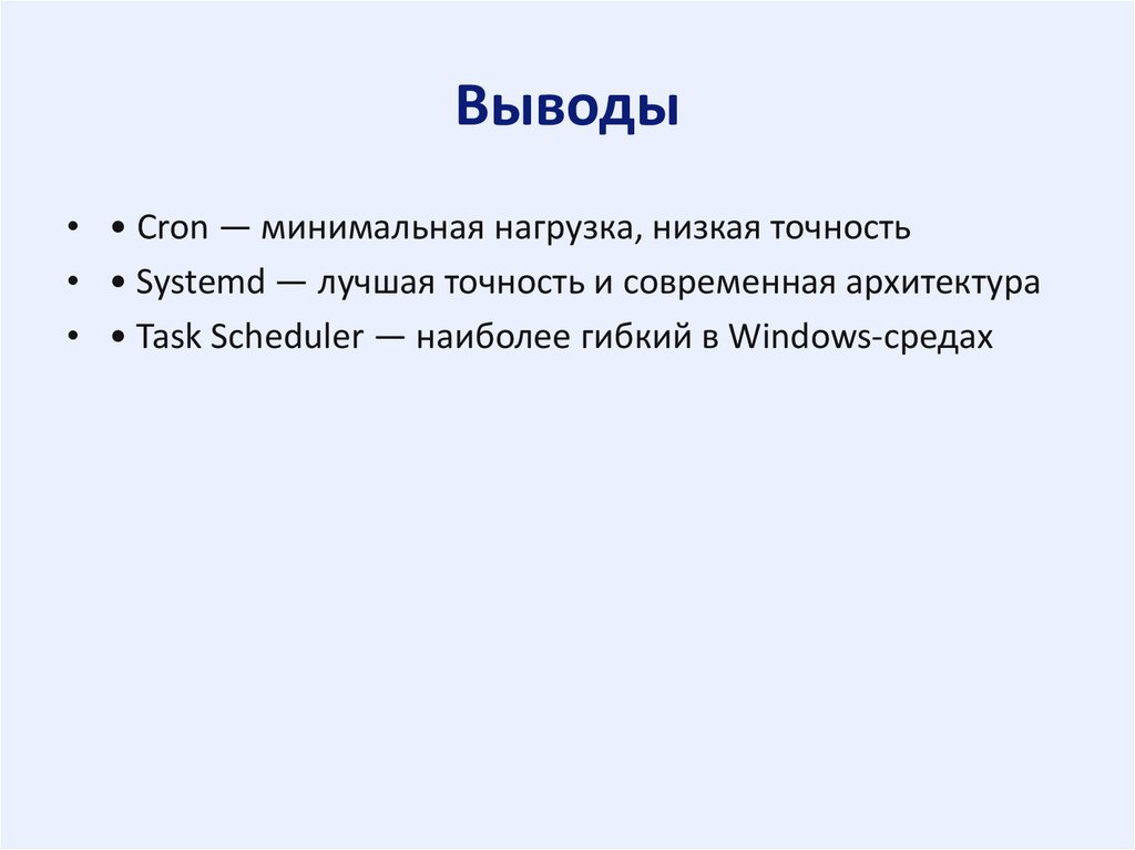 Выводы• • Cron — минимальная нагрузка, низкая точность