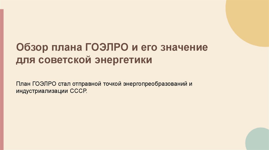 Обзор плана ГОЭЛРО и его значениедля советской энергетики