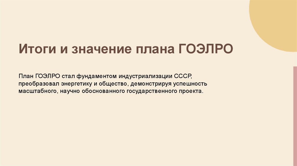 Итоги и значение плана ГОЭЛРОПлан ГОЭЛРО стал фундаментом индустриализации СССР,