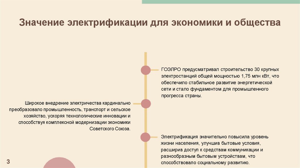 Значение электрификации для экономики и обществаГОЭЛРО предусматривал строительство 30 крупных