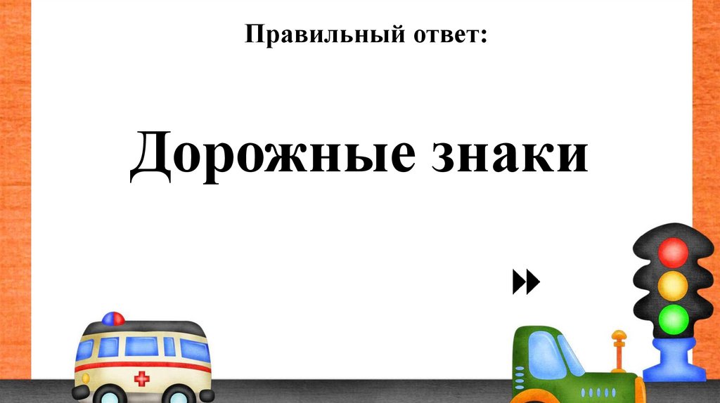 Правильный ответ:Дорожные знаки