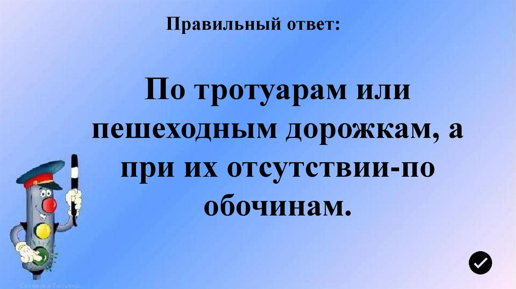 Правильный ответ:По тротуарам или