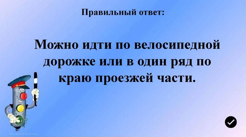 Правильный ответ:Можно идти по велосипедной