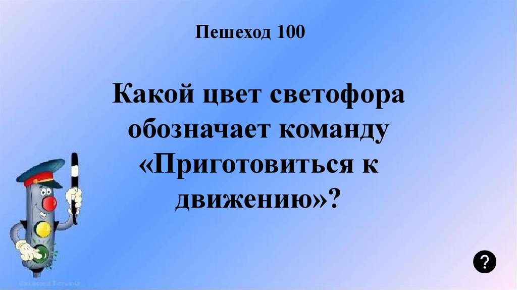 Пешеход 100Какой цвет светофора