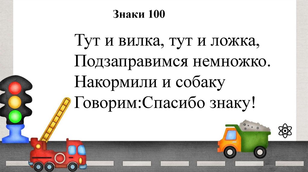 Знаки 100Тут и вилка, тут и ложка,