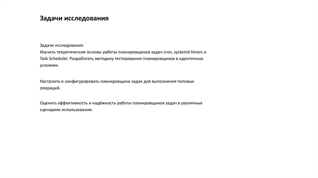 Предмет исследования: планировщики задач cron, systemd timers и