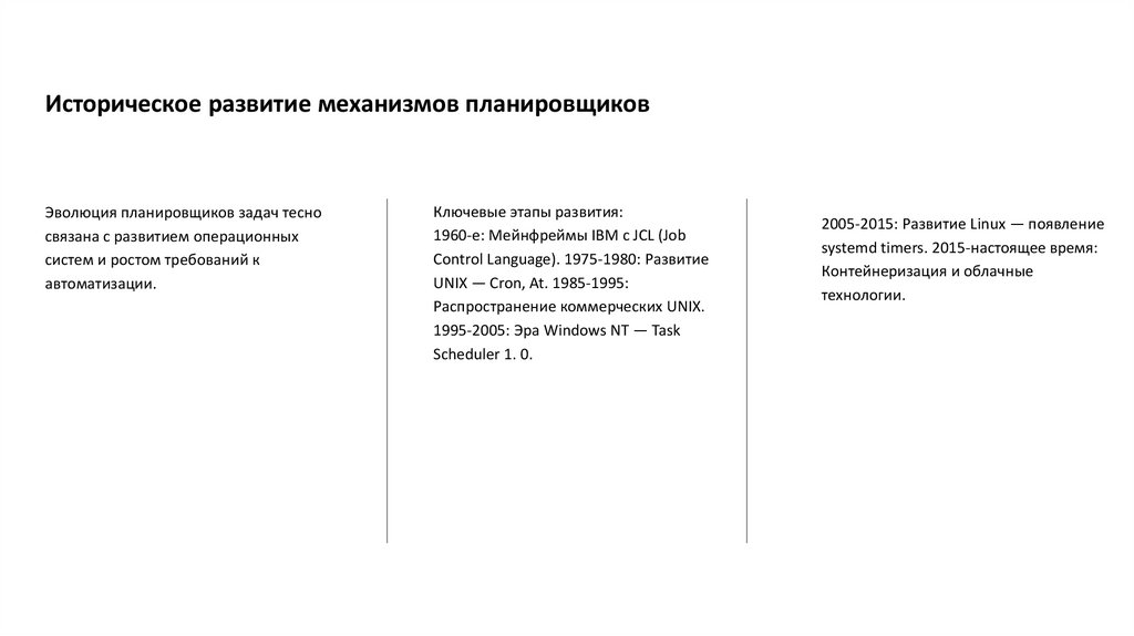 Историческое развитие механизмов планировщиковЭволюция планировщиков задач тесно