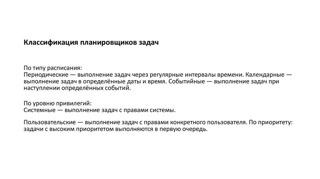 Классификация планировщиков задачПо типу расписания: