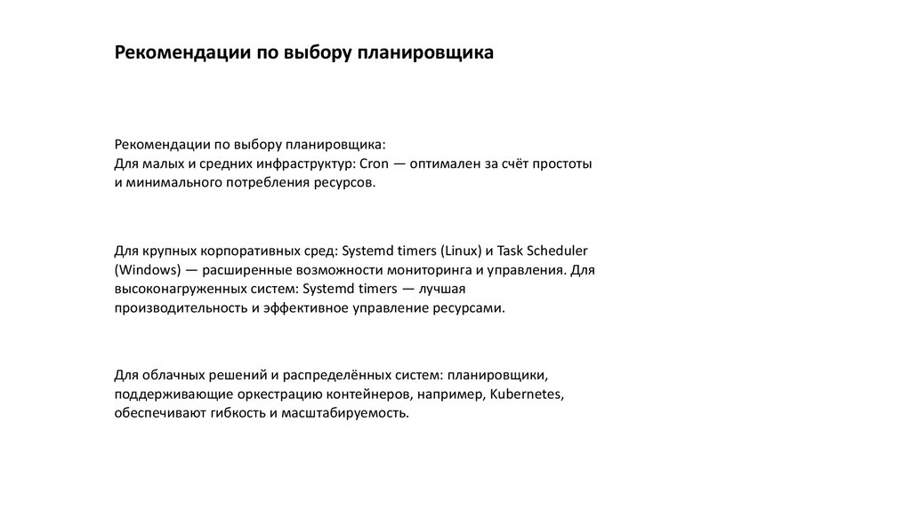 Рекомендации по выбору планировщикаРекомендации по выбору планировщика: