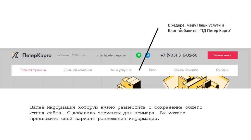 Балее информация которую нужно разместить с сохранение общегостиля сайта. Я добавила элементы для примера. Вы можете