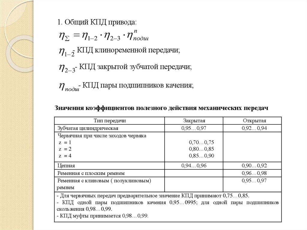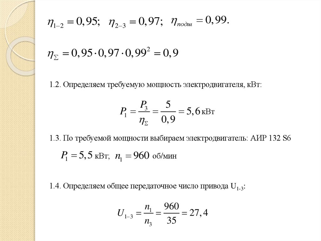 1 2 0,95; 2 3 0,97; подш 0,99.0,95 0,97 0,992 0,9