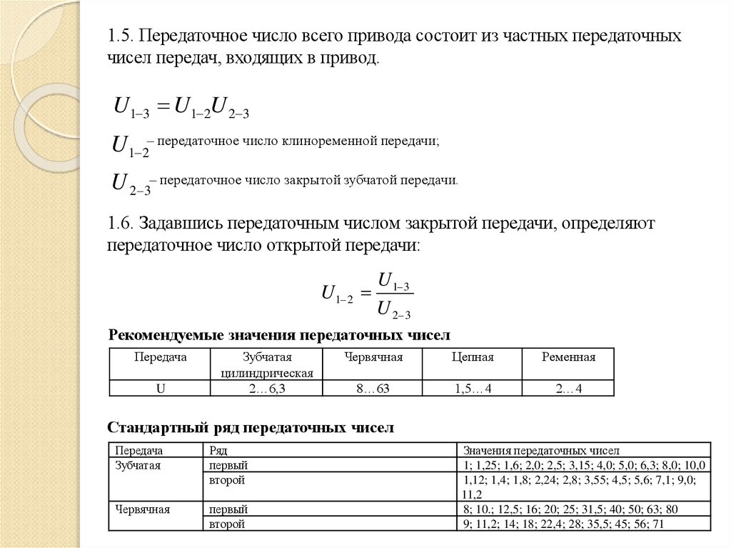Для зубчатых (червячных) передач: U = Z2 / Z1