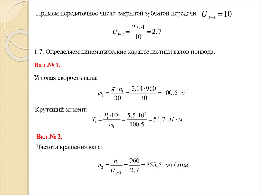 Примем передаточное число закрытой зубчатой передачиU1 2