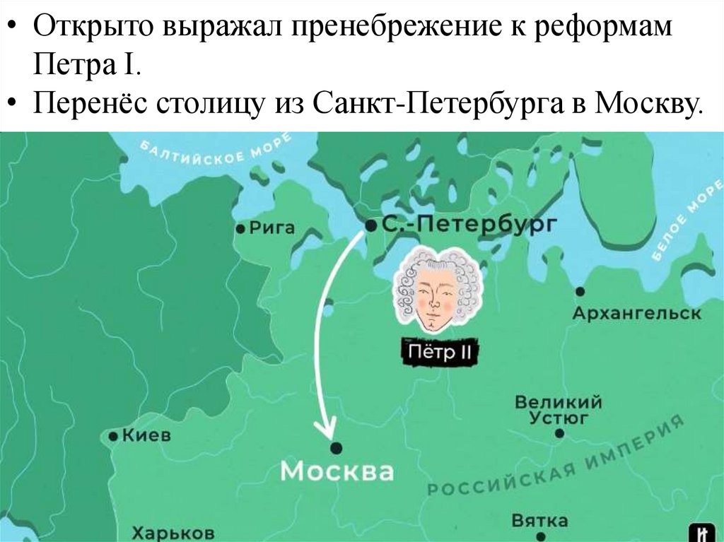 • Перенёс столицу из Санкт-Петербурга в Москву.