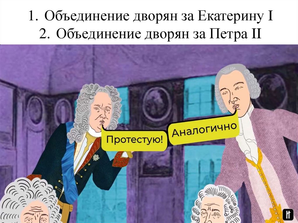 1. Объединение дворян за Екатерину I2. Объединение дворян за Петра II