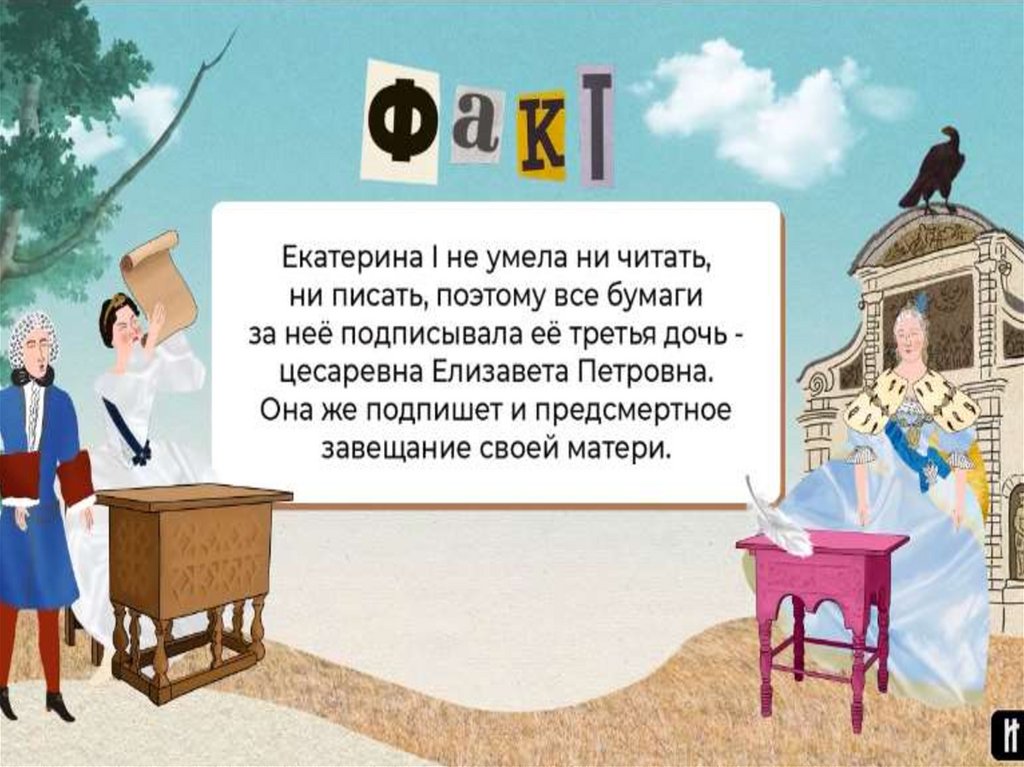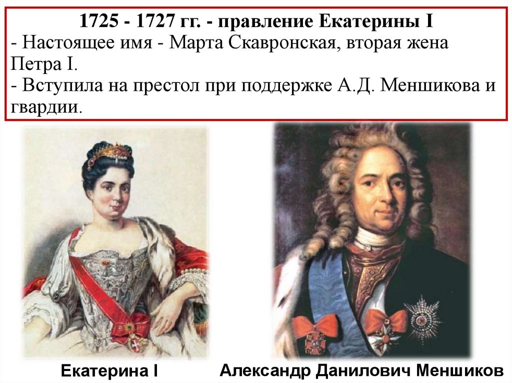 - Вступила на престол при поддержке А.Д. Меншикова и