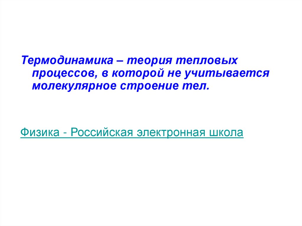 Термодинамика – теория тепловыхпроцессов, в которой не учитывается