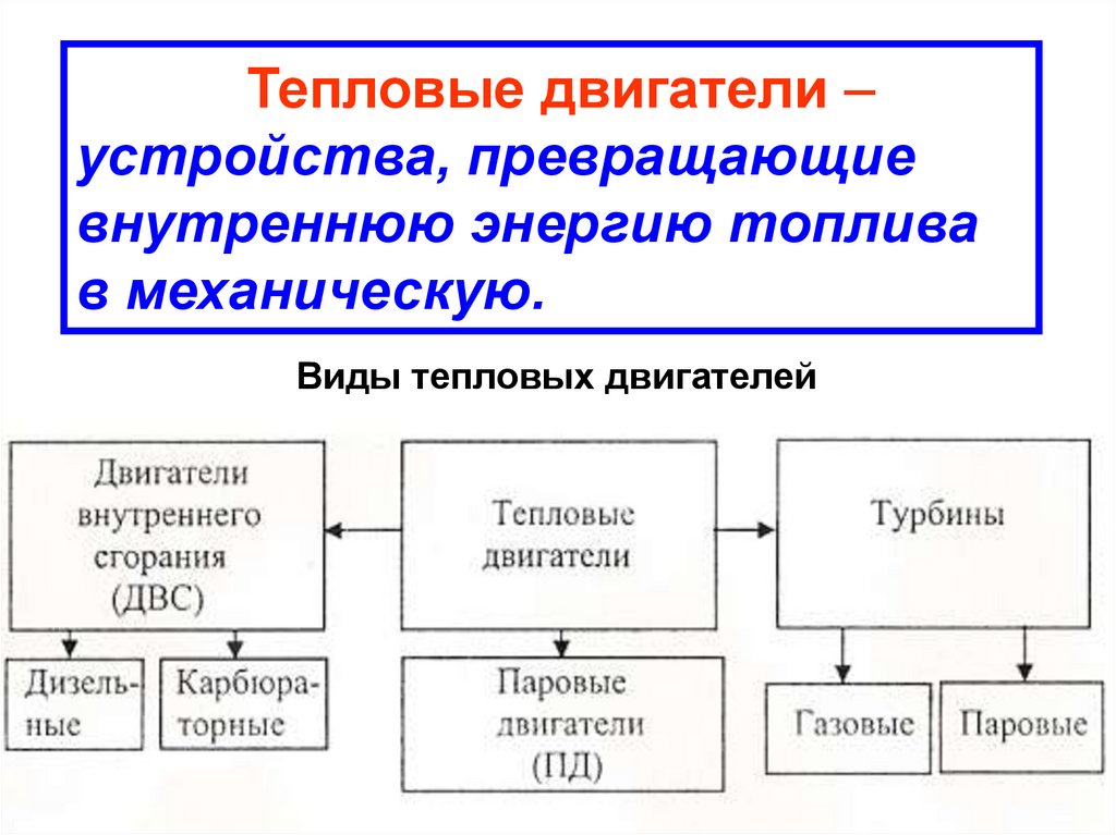 Виды тепловых двигателей