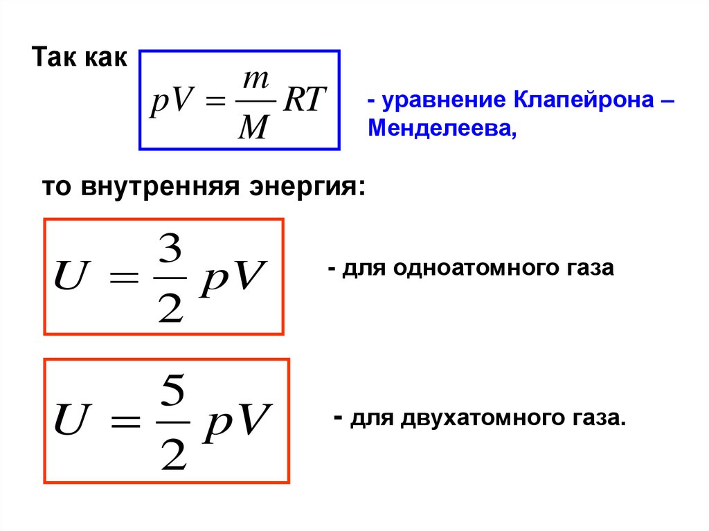 - для одноатомного газа