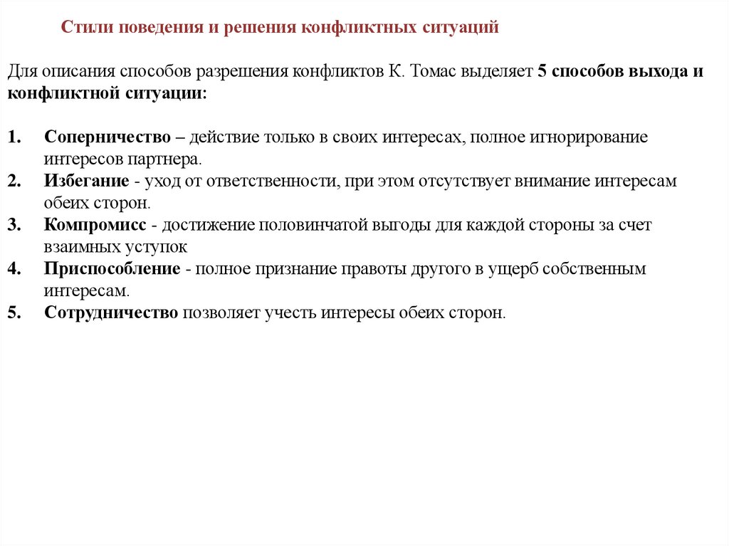 •Убеждение, что «победа» в конфликте важнее, чем решение реальной