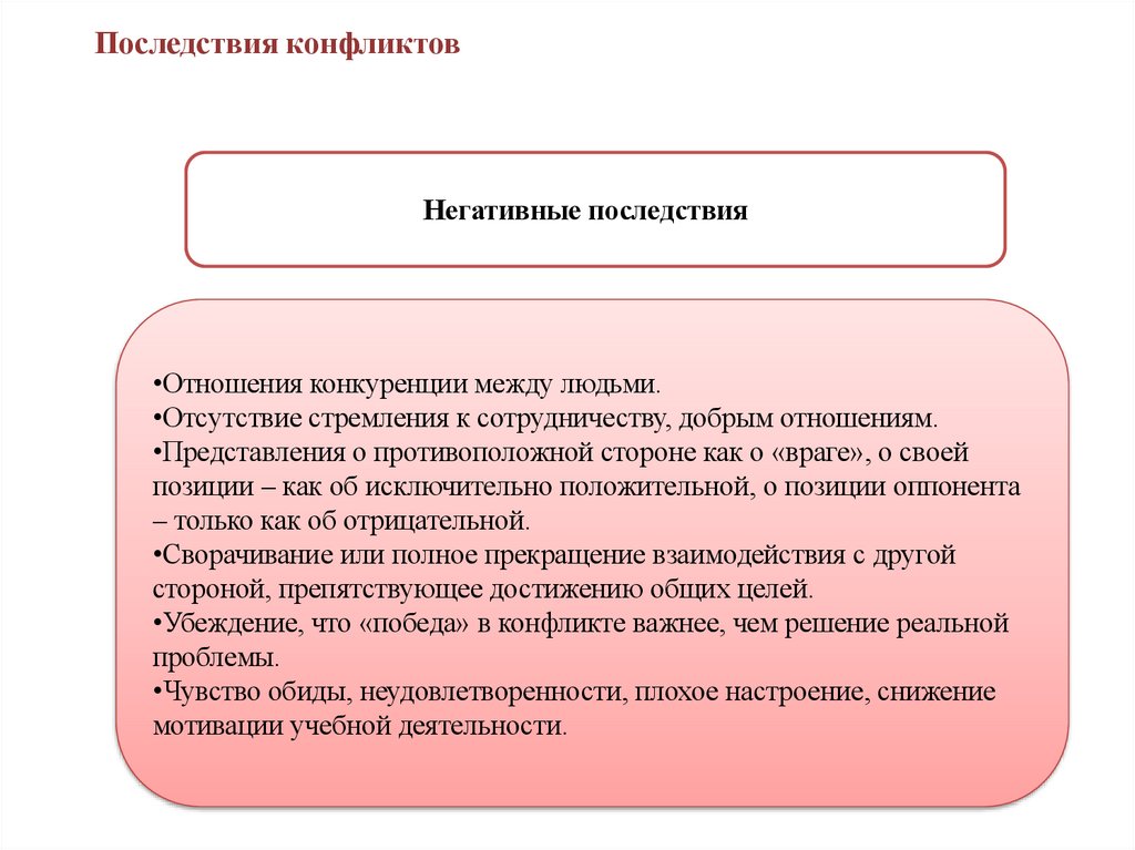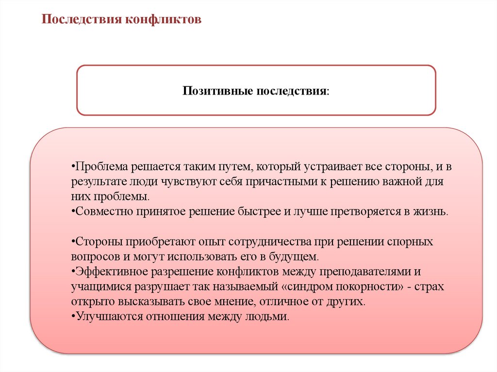 Общая идея положительного влияния конфликтов сводится к следующему: