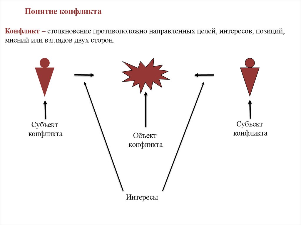 Понятие конфликтаКонфликт – столкновение противоположно направленных целей, интересов, позиций,