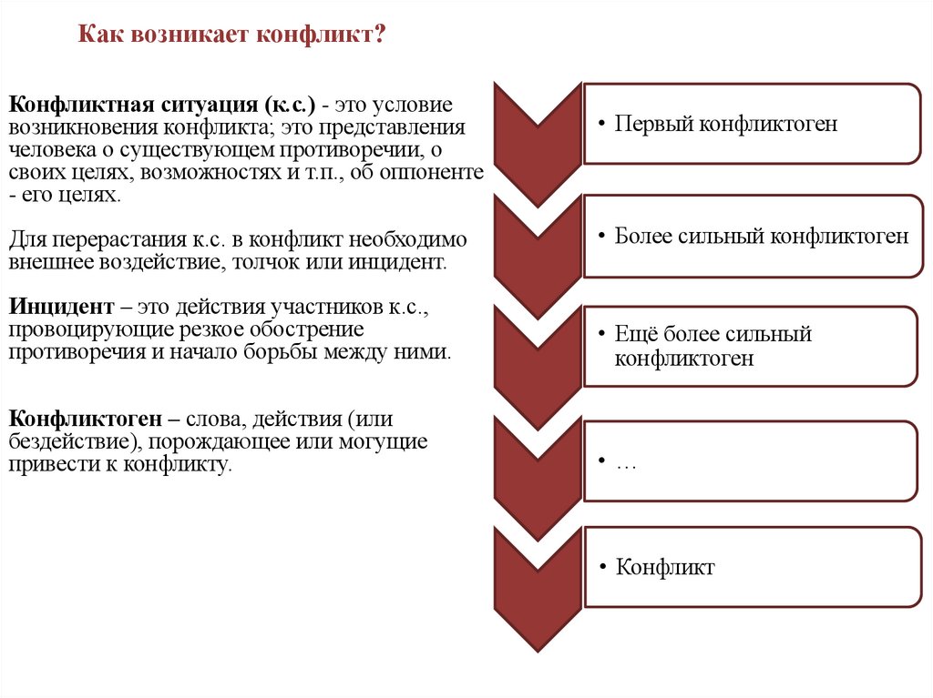 Как возникает конфликт?Конфликтная ситуация (к.с.) - это условие