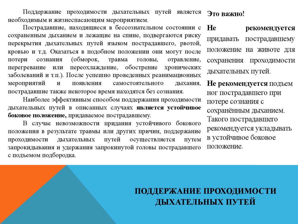 Ø придать и поддерживать у пострадавшего оптимальное положение тела;