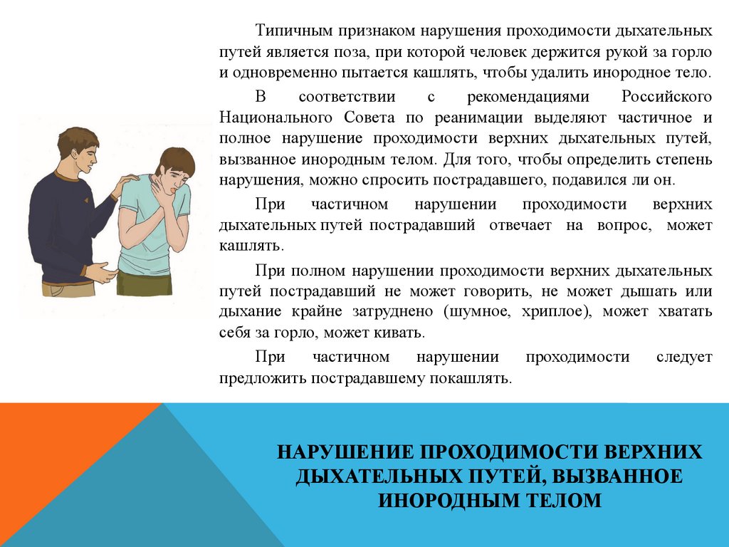 нарушения, можно спросить пострадавшего, подавился ли он.
