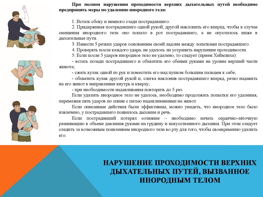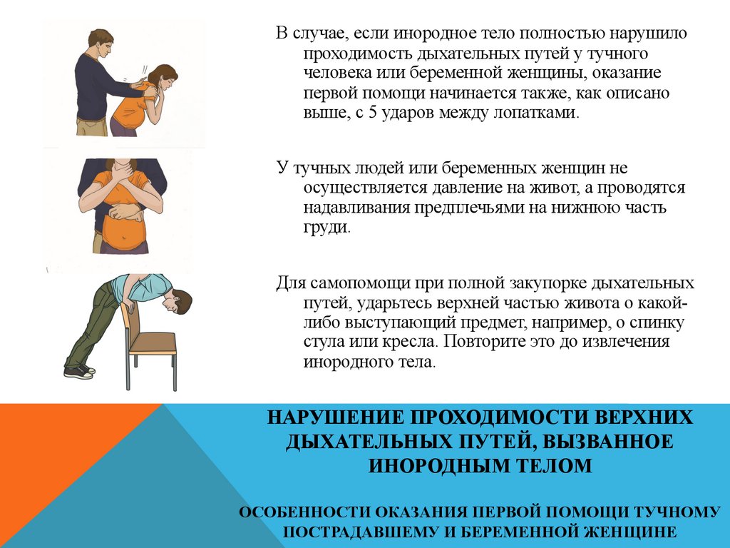 В случае, если инородное тело полностью нарушилопроходимость дыхательных путей у тучного