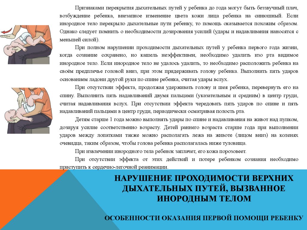 инородное тело перекрыло дыхательные пути ребенку, то помощь оказывается похожим образом.